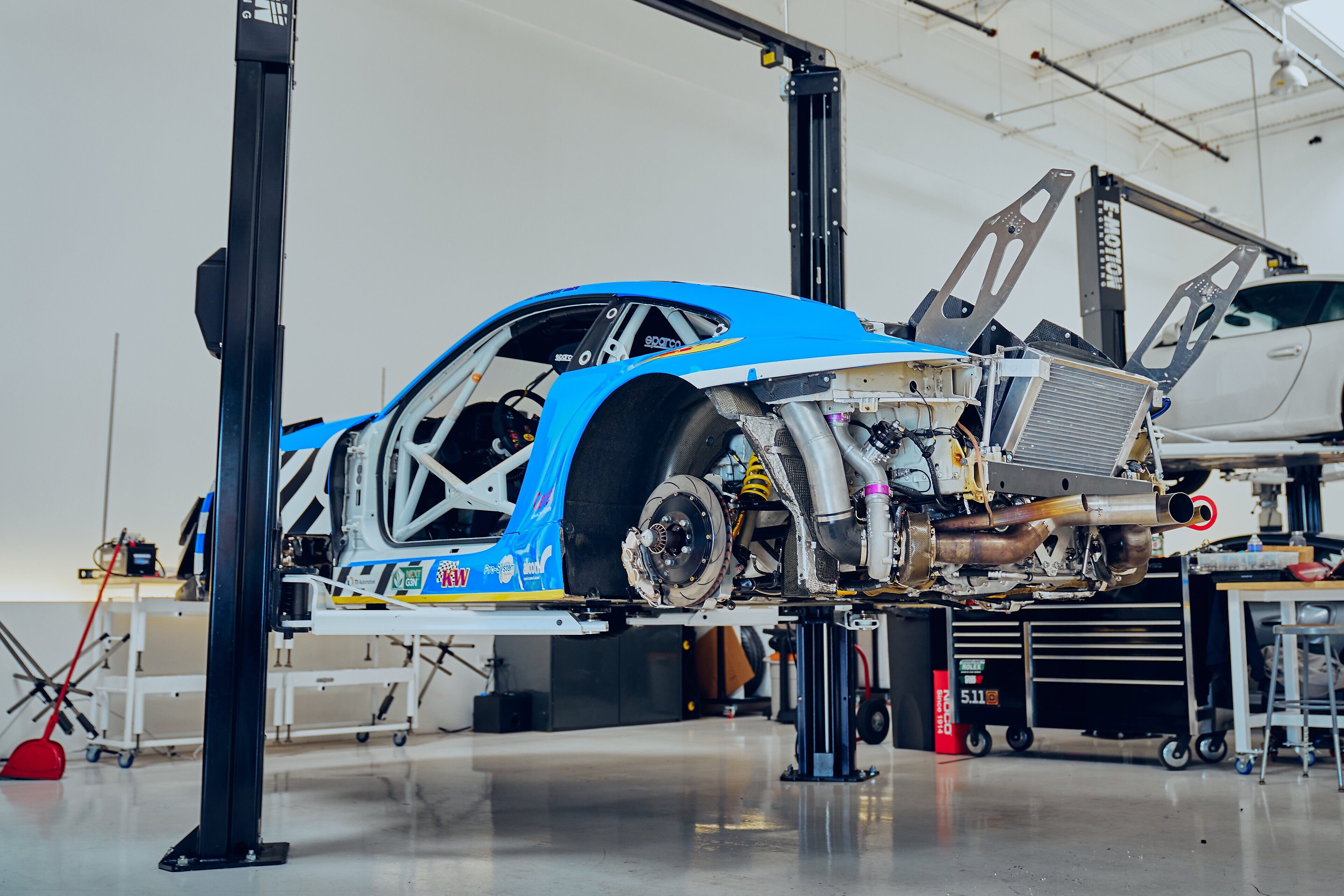Rhys Millen 的汽车由 E-Motion 团队独特设计,它还借鉴了历史,安装了一台扁平的 6 Mezger 发动机和 2 个大型涡轮增压器,在 8,000rpms 时提供 1,000rwhp 的基准功率,在仅 4,500 rpms 时提供 700lb/ft 的扭矩。